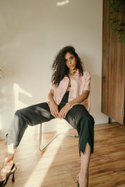 Short Sleeve Silk Shirt - Dusty Pink